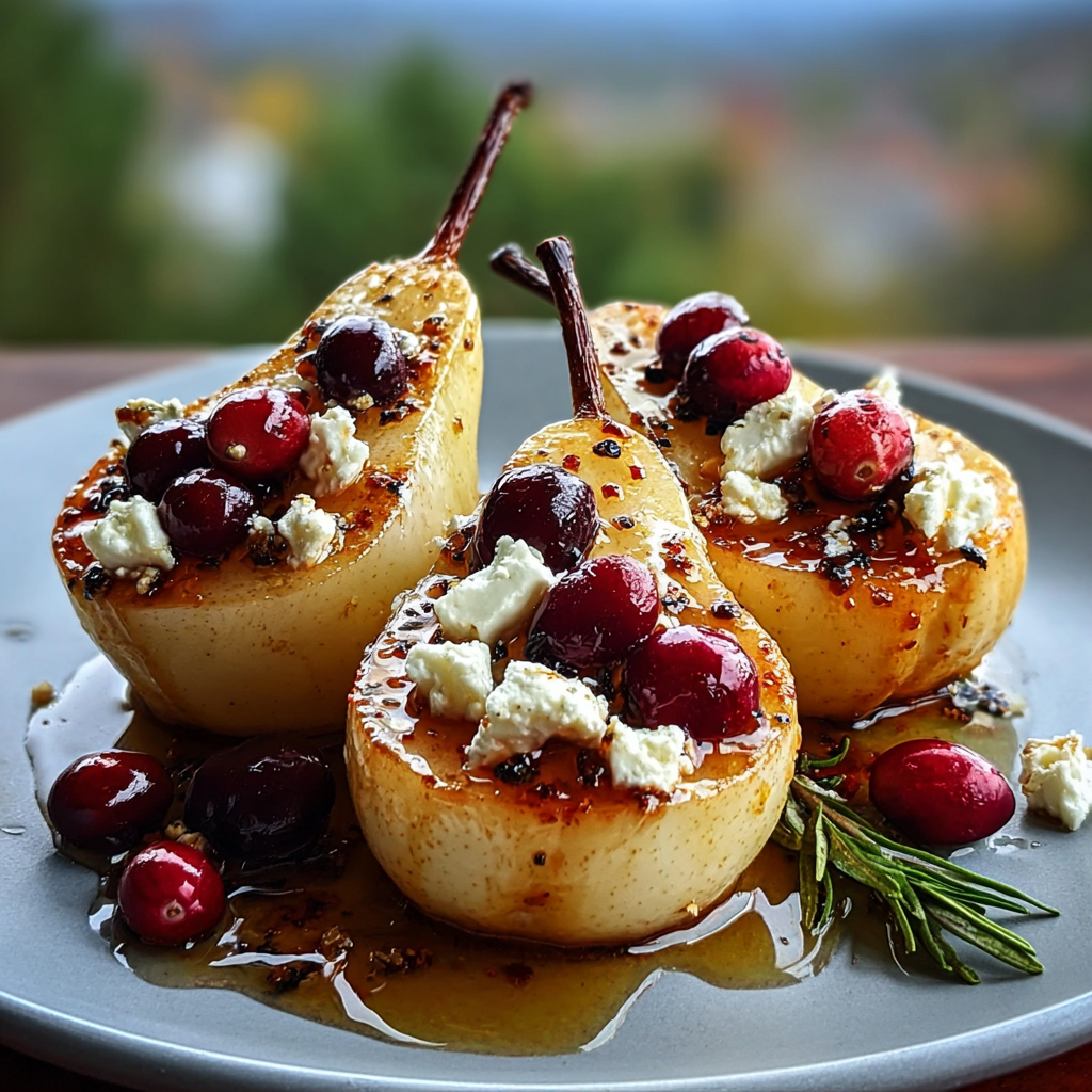 A warm, elegant, and healthy dish featuring baked pears stuffed with feta cheese, dried cranberries, and drizzled with honey. Perfect as an appetizer, side, or light dessert with a balance of sweet, savory, and tangy flavors.