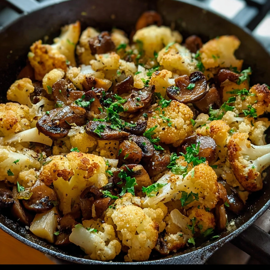 A quick, healthy, and flavorful one-skillet dish featuring sautéed cauliflower florets and mushrooms, seasoned with garlic, herbs, and spices. Perfect for a weeknight side or vegetarian main.