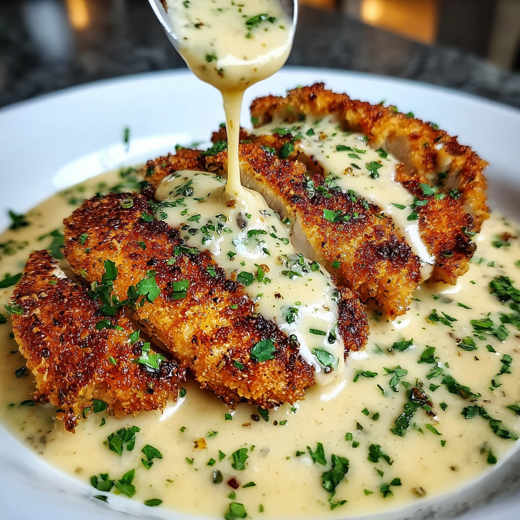 A crispy, golden-brown chicken breast coated in Parmesan and served with a rich, creamy garlic sauce. A one-pan meal that’s simple, flavorful, and comforting.