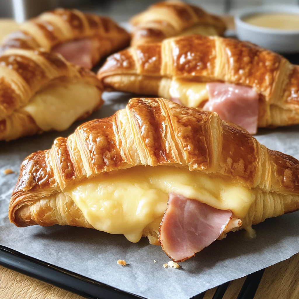 Use pre-baked croissants, slice them open, and fill with warm ham and cheese. Grill or toast for a melty finish—great for packed lunches.