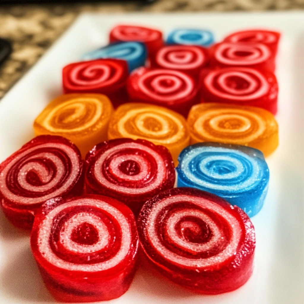 Jello Roll Ups are a creative dessert made by combining flavored gelatin with melted marshmallows, setting the mixture into a thin sheet, and rolling it into a pinwheel shape. Once sliced, they resemble colorful candy spirals and are soft, chewy, and deliciously sweet.
