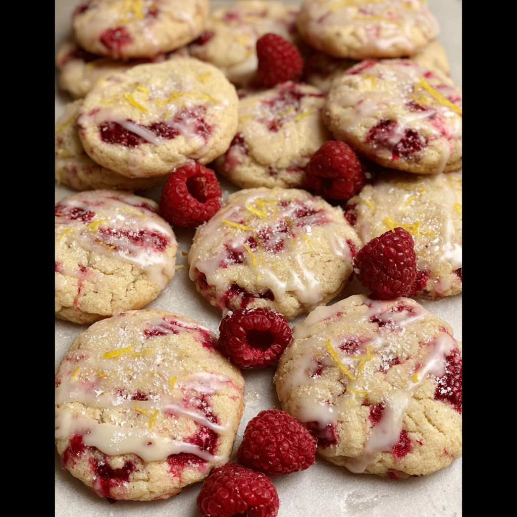 | Soft, chewy lemon raspberry cookies with zesty citrus flavor and juicy raspberries, perfect for summer gatherings or tea parties. |