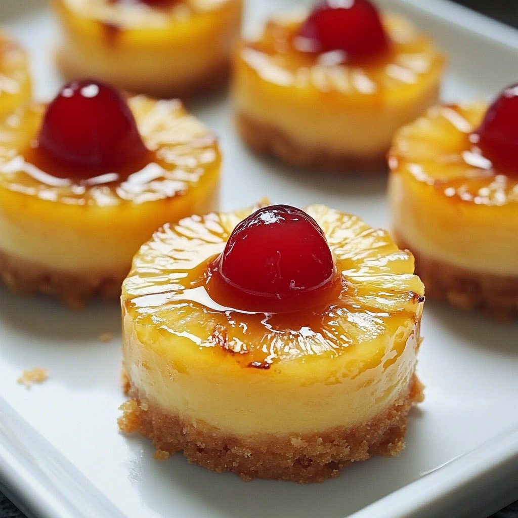 These Mini Pineapple Upside-Down Cheesecakes combine a caramelized pineapple topping, a buttery graham cracker crust, and a creamy cheesecake filling for a delicious, bite-sized dessert. Perfect for parties or a tropical treat! 🍍🍒