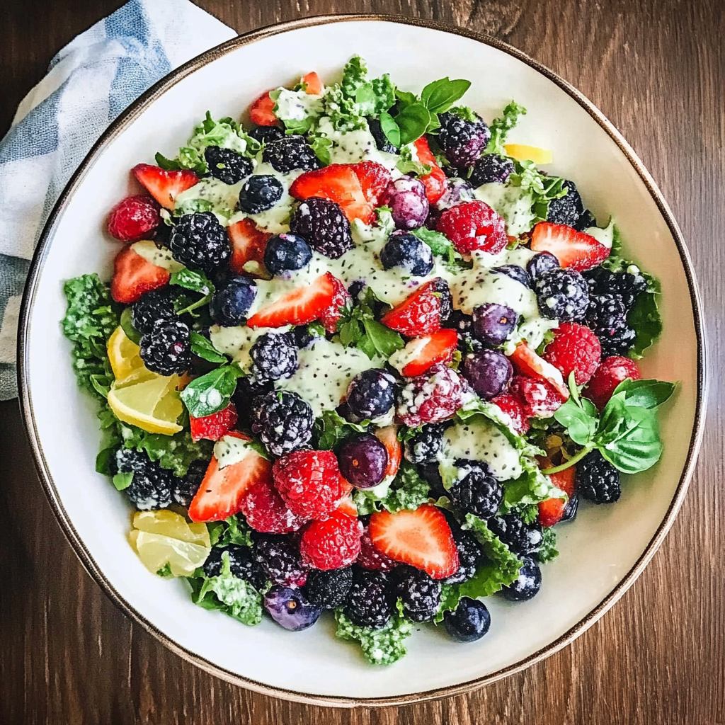 A vibrant and antioxidant-rich salad featuring mixed berries, super greens, and a creamy lemon herb yogurt dressing. Light, refreshing, and nutrient-packed — perfect for healthy lunches, meal prep, or entertaining.